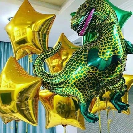 Шары в форме голов динозавров могут стать интересным декоративным элементом и даже выступать в качестве фотозоны для гостей. Также можно использовать шары в форме маленьких динозавров, чтобы расставить их по всему помещению и создать эффект настоящей долины динозавров.