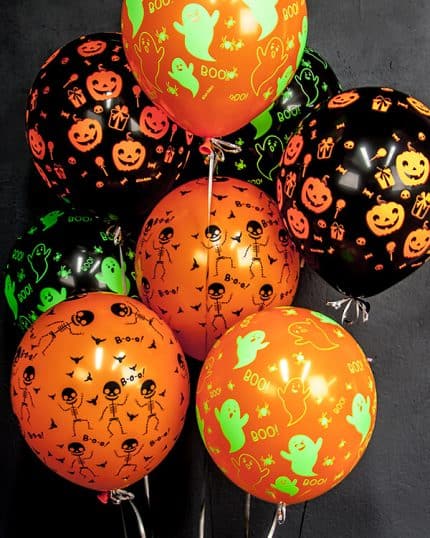 Одним из основных элементов декора на Хэллоуин являются шары в виде нарисованных на них ужасающих лиц, черепов, пауков и других монстров. Также популярны шары с изображением призраков, вампиров, зомби и других существ, связанных с мистикой и ужасами.